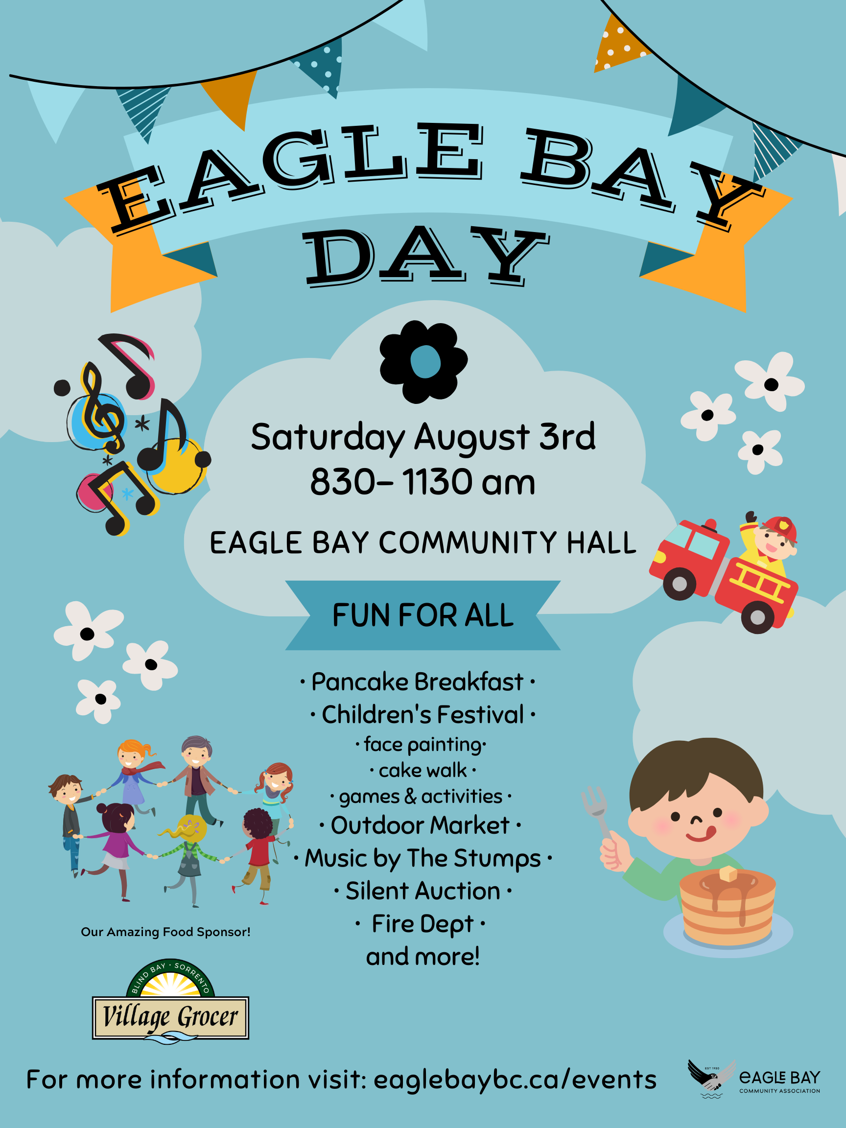 Continuing the tradition and bringing new family fun, Eagle Bay Day is back better than ever. Pancake breakfast, music, face painting, games, silent auction, a fortune teller and more! We've packed SO much fun into three hours so there is plenty of time to enjoy the lake!