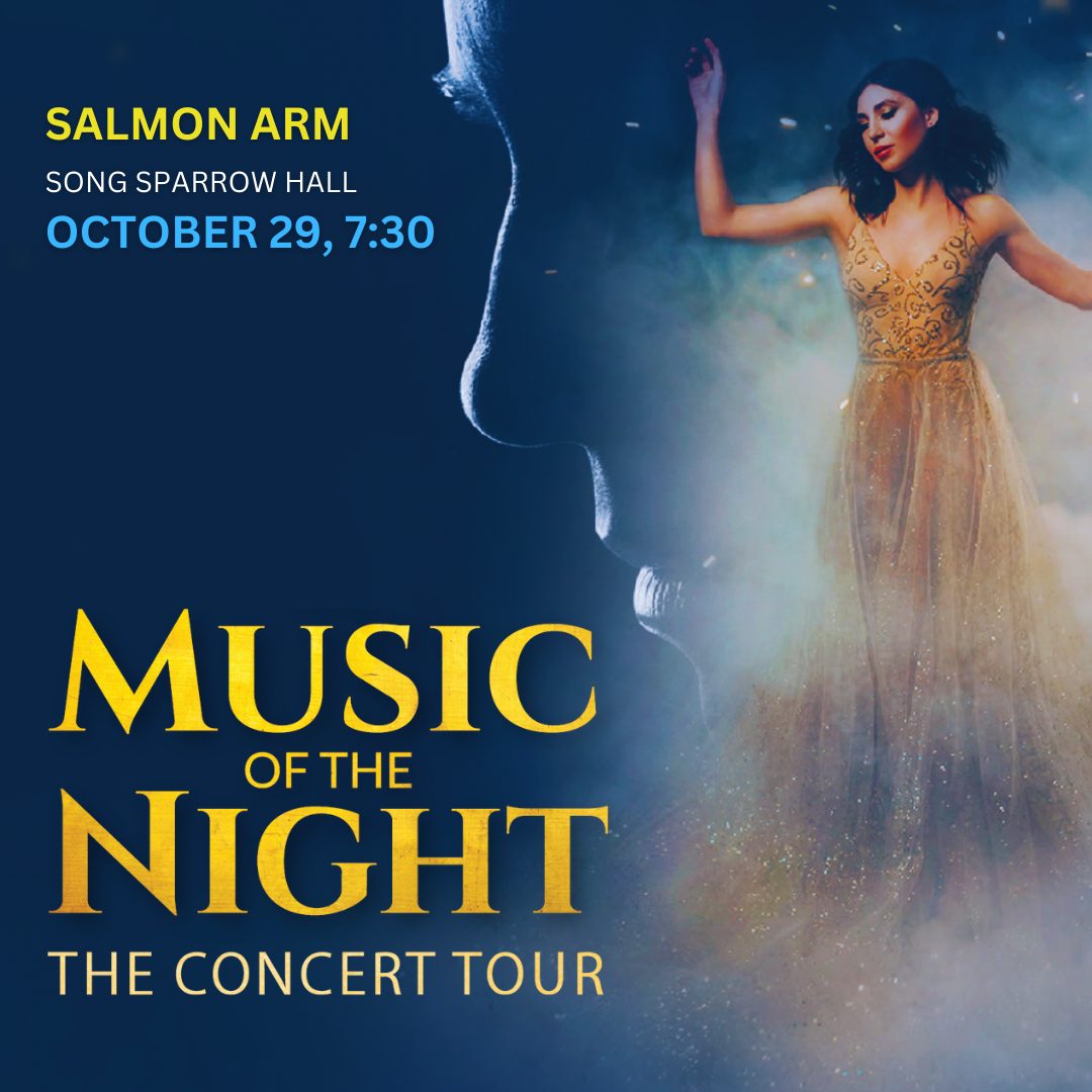 Music of the Night: The Concert Tour Oct 29: Salmon Arm, Song Sparrow Hall, 7:30pm* Oct 30: Vernon, Vernon & District Performing Arts Centre, 7:30pm Tickets/Info/Promo Video: www.musicofthenight.live This concert celebration of Andrew Lloyd Webber returns to BC (last here in 2022) after having now toured across Canada to sold out audiences from Victoria to […]
