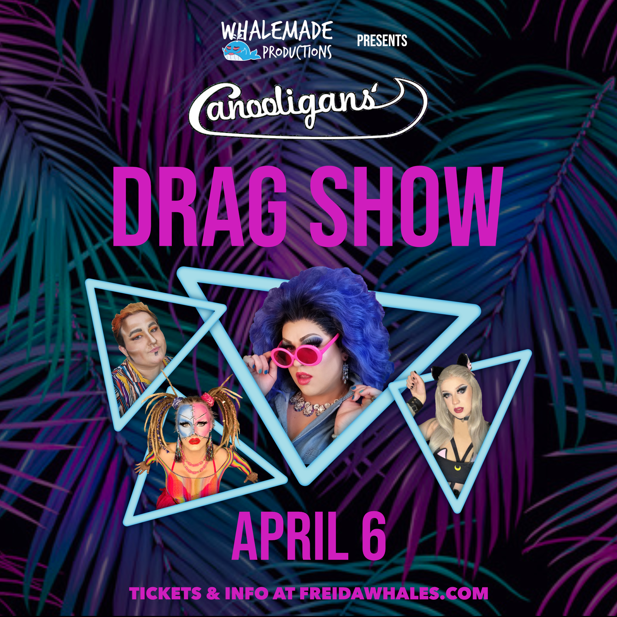 $20 – $30Here’s your first chance to catch the Whale watching experience right from your own Canoe! That’s right the pod is taking over Canooligans for a night of amazing drag! Featuring Freida Whales, Syren Call, Valerie Rose, and Wanda Lust. 19+ show Doors at 8:30 p.m., show at 9:00 p.m. 19+ event.