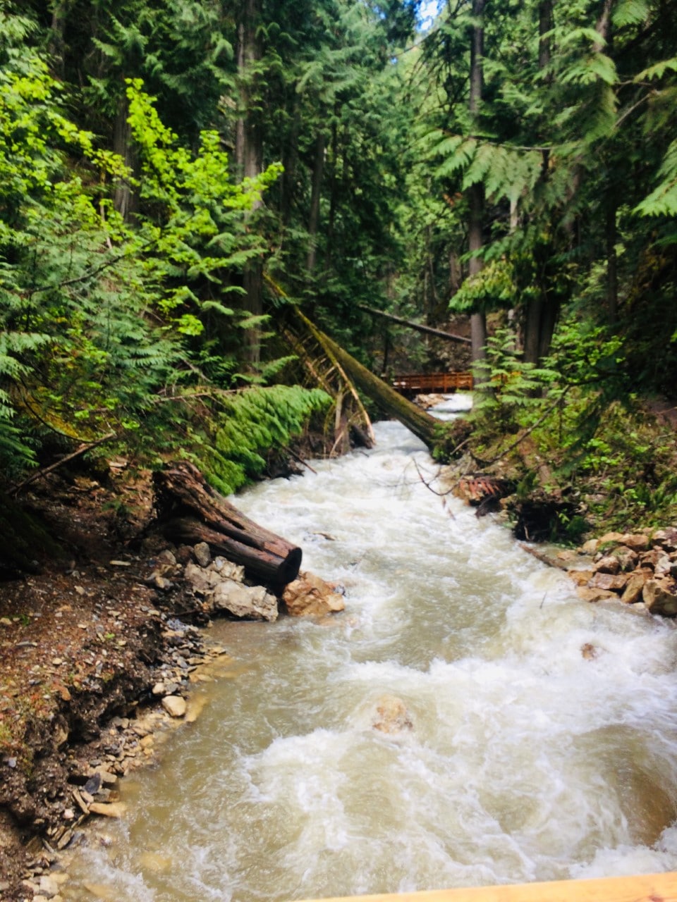 The Adams River Gorge Trail is a spectacular journey that starts on an old road, becomes an easy trail in the canyon, and ends up at the spectacular gorge. You can continue on the trail, which runs alongside the river and eventually comes to Gold Creek. Climbing the rocks and taking in the white water rapids’ views rushing and churning through the narrow gorge below is a sight to see. Below the canyon is a large pool with a sandy beach, a perfect spot for a picnic! The springtime is really wild, with the mountain run-off; take extra caution on the rocks!