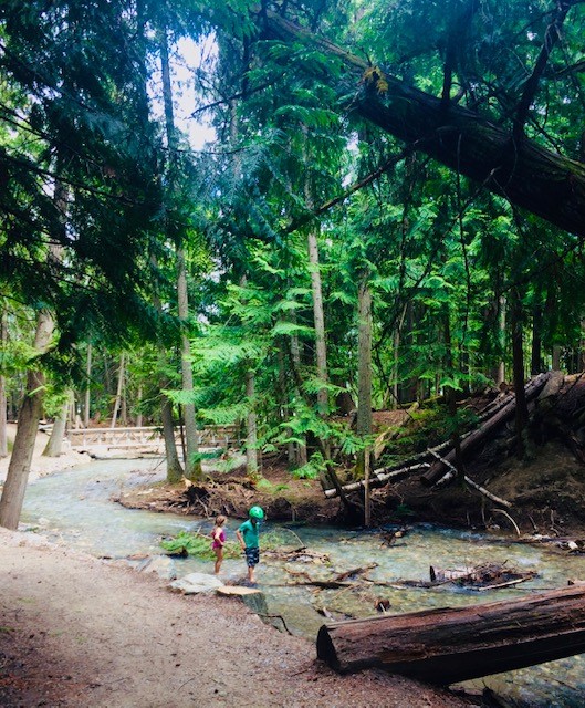 The Bear Creek Flume Trails is a historic trail with informational signage and several fascinating points of interest along the way! The Adams River Lumber Company built the flumes to transport logs. It consists of two trails that are connected by a pedestrian underpass under the main road. You can enjoy these trails together or at separate times.